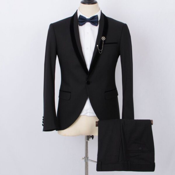 • חליפת יוקרתית דגם טוקסידו טוקסידו צווארון סטאן בגזרת SUPPER SLIM